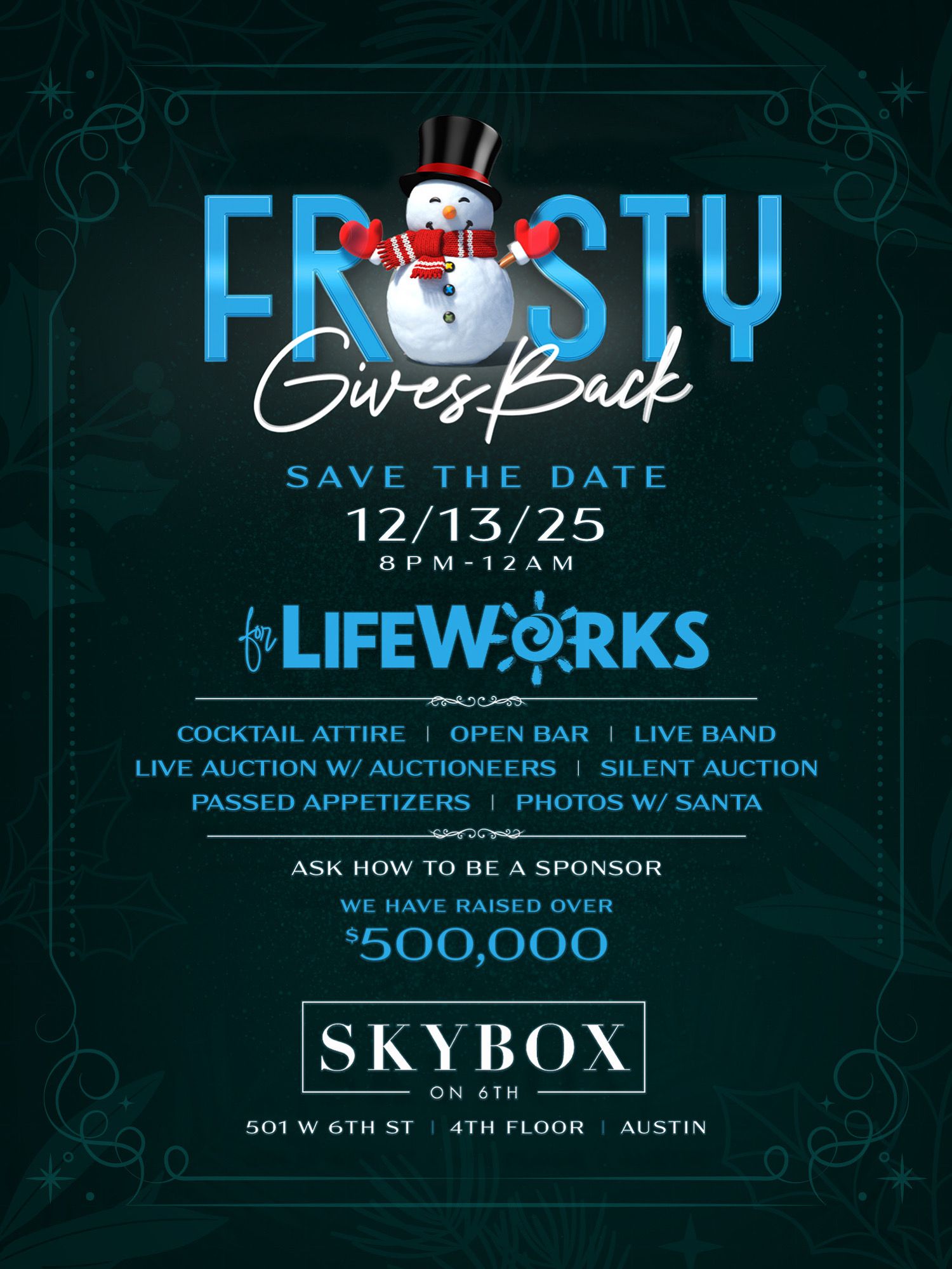 Frosty Gives Back invites guests to a meaningful night of philanthropy, celebration, and community support. Established in 2017, this annual event raises essential funds for organizations serving underserved youth in Austin. Attendees can expect an elegant atmosphere, heartfelt stories, and a shared commitment to making a positive impact during the holiday season. It is a night where celebration and purpose come together beautifully.